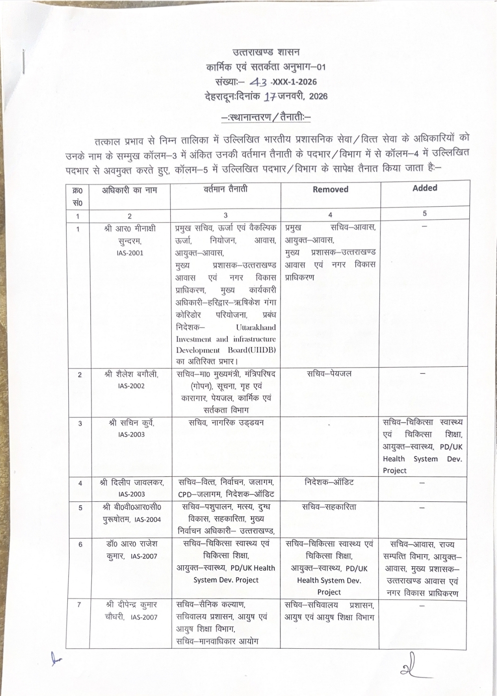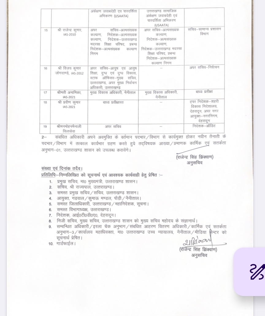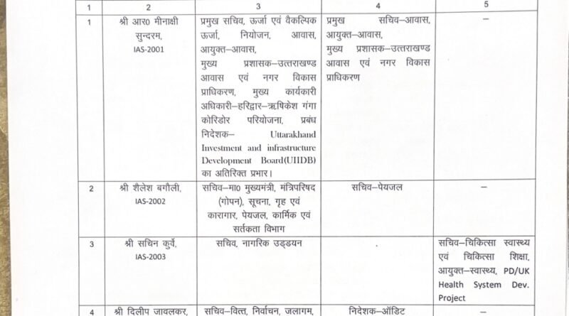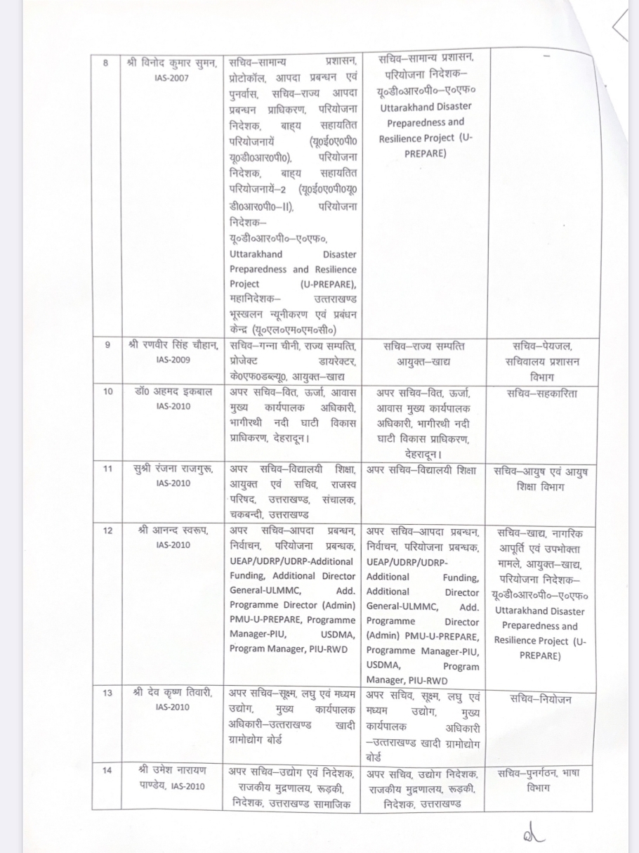 उत्तराखंड से बड़ी खबर,कई आईएएस और PCS अधिकारियों की जिम्मेदारी में बड़ा बदलाव
