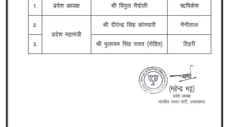 Read Moreदेहरादून: भारतीय जनता पार्टी ने युवा मोर्चा के प्रदेश अध्यक्ष और महामंत्रियों की घोषणा कर दी है। प्रदेश मीडिया प्रभारी