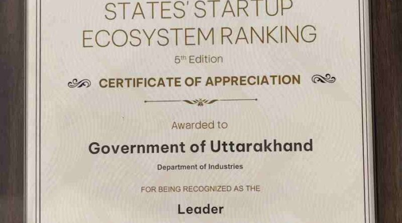 Read Moreदेहरादून। भारत सरकार के वाणिज्य एवं उद्योग मंत्रालय के अंतर्गत उद्योग संवर्धन एवं आंतरिक व्यापार विभाग (DPIIT) द्वारा जारी States’ Startup