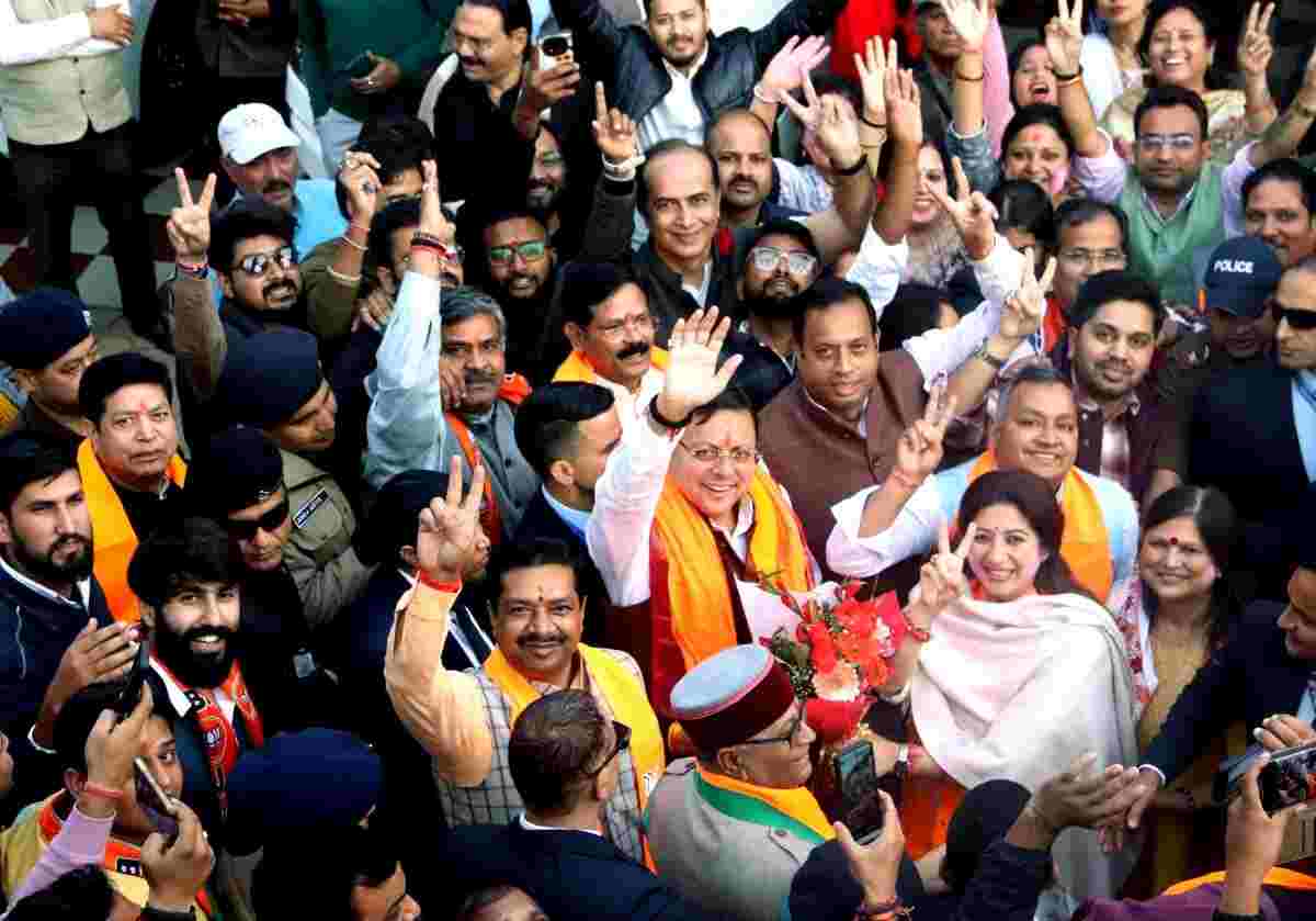 प्रदेश मुख्यालय में हुए इस जश्न में कार्यकर्ताओं ने दिवाली की तरह जमकर आतिशबाजी की और एक दूसरे को होली के रंग लगाकर बधाई दी। ढोल के थाप पर नाचते गाते कार्यकर्ताओं की गगनचुंबी नारेबाजी ने माहौल और भी उत्सवर्धक बना दिया। इस दौरान कार्यकर्ताओं के बीच मिष्ठान वितरण करते समय कैबिनेट मंत्री सुबोध उनियाल, गणेश जोशी, राज्यसभा सांसद नरेश बंसल, विधायक खजान दास, उमेश काऊ, सविता कपूर, प्रदेश महामंत्री कुंदन परिहार दीप्ति रावत, प्रदेश कोषाध्यक्ष पुनीत मित्तल, प्रदेश मंत्री गौरव पांडे, सतीश लखेड़ा, कार्यालय सचिव जगमोहन रावत, प्रदेश मीडिया सह संयोजक राजेंद्र सिंह नेगी, प्रदेश प्रवक्ता कमलेश रमन, दायित्वधारी सुभाष बड़थ्वाल, विनोद उनियाल , शादाब शम्स, मधु भट्ट, युवा मोर्चा अध्यक्ष विपुल मंडोली, सिद्धार्थ अग्रवाल सुमित बड़ी संख्या में पदाधिकारी एवं वरिष्ठ कार्यकर्ता मौजूद रहे।