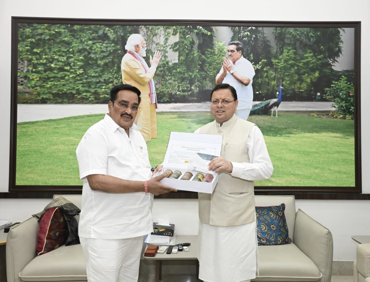 उत्तराखंड के मुख्यमंत्री पुष्कर सिंह धामी ने सोमवार देर शाम नई दिल्ली में केंद्रीय जल शक्ति मंत्री सी.आर. पाटिल से शिष्टाचार भेंट की। इस दौरान मुख्यमंत्री ने राज्य के सामाजिक और आर्थिक विकास को गति देने के उद्देश्य से जल विद्युत परियोजनाओं पर चर्चा की।