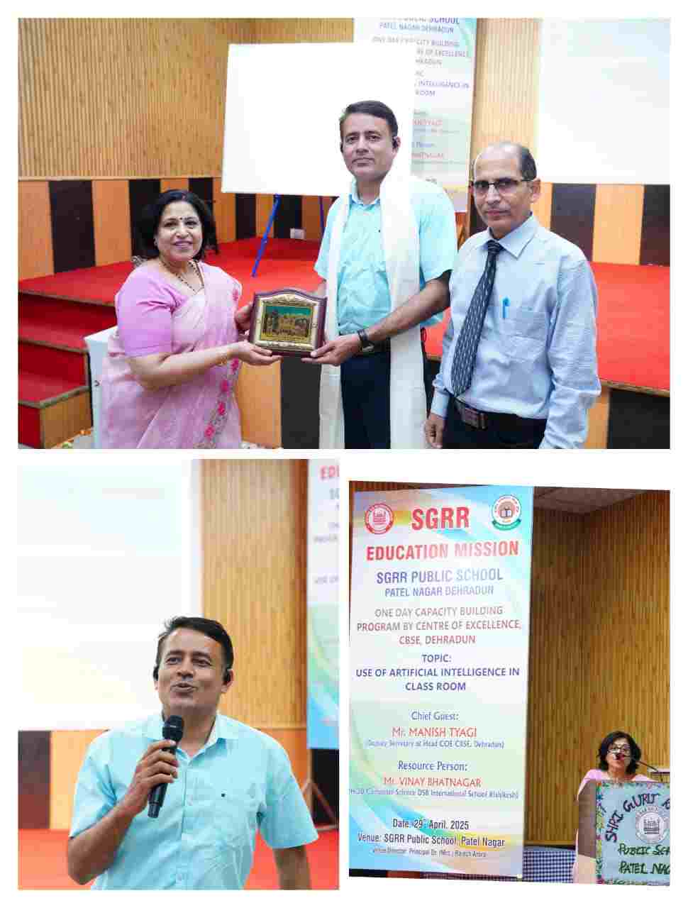देहरादून। श्री गुरु राम राय पब्लिक स्कूल पटेल नगर ने दिनांक 29 अप्रैल, 2025 को सीओई, सीबीएसई, देहरादून क्षेत्र द्वारा आयोजित एक दिवसीय क्षमता निर्माण कार्यक्रम की मेजबानी की। कार्यशाला का विषय “कक्षाओं में एआई का उपयोग” था।  मनीष त्यागी, उप सचिव और प्रमुख सीओई, सीबीएसई देहरादून कार्यक्रम के मुख्य अतिथि थे। श्री गुरु राम राय पब्लिक स्कूल पटेल नगर की प्रधानाचार्य डॉ.  राजेश अरोड़ा ने मुख्य अतिथि का भावपूर्व स्वागत किया और स्वागत भाषण दिया। विनय भटनागर, विभागाध्यक्ष, कंप्यूटर विज्ञान, डीएसबी इंटरनेशनल स्कूल, ऋषिकेश कार्यशाला के रिसोर्स पर्सन थे। कार्यशाला का उद्घाटन सत्र मुख्य अतिथि, रिसोर्स पर्सन, प्रबंध समिति के सदस्य श्री वी एम थपलियाल, ई.ओ. तथा श्री विजय नौटियाल, अधिकृत हस्ताक्षरी, श्री गुरू राम राय एजुकेशन मिशन और स्कूल की प्रधानाचार्य द्वारा दीप प्रज्ज्वलन के साथ शुरू हुआ, जिसके बाद सरस्वती वन्दना की गई। विभिन्न स्कूलों से 60 प्रतिभागियों ने बहुत ही संवादात्मक तरीके से अपनी क्षमता को बढ़ाया। रिसोर्स पर्सन ने एआई के विभिन्न व्यावहारिक अनुप्रयोगों का प्रदर्शन किया। मुख्य अतिथि, मनीष त्यागी ने प्रतिभागियों को अपने ज्ञान को बढ़ाने और अद्यतन करने के लिए अधिक से अधिक प्रशिक्षण कार्यक्रम में भाग लेने के लिए प्रेरित किया।