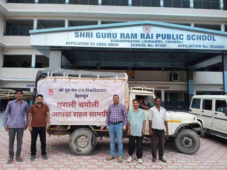 श्री गुरु राम राय विश्वविद्यालय ने थराली चमोली आपदा पीडितों के लिए भेजी राहत सामग्री