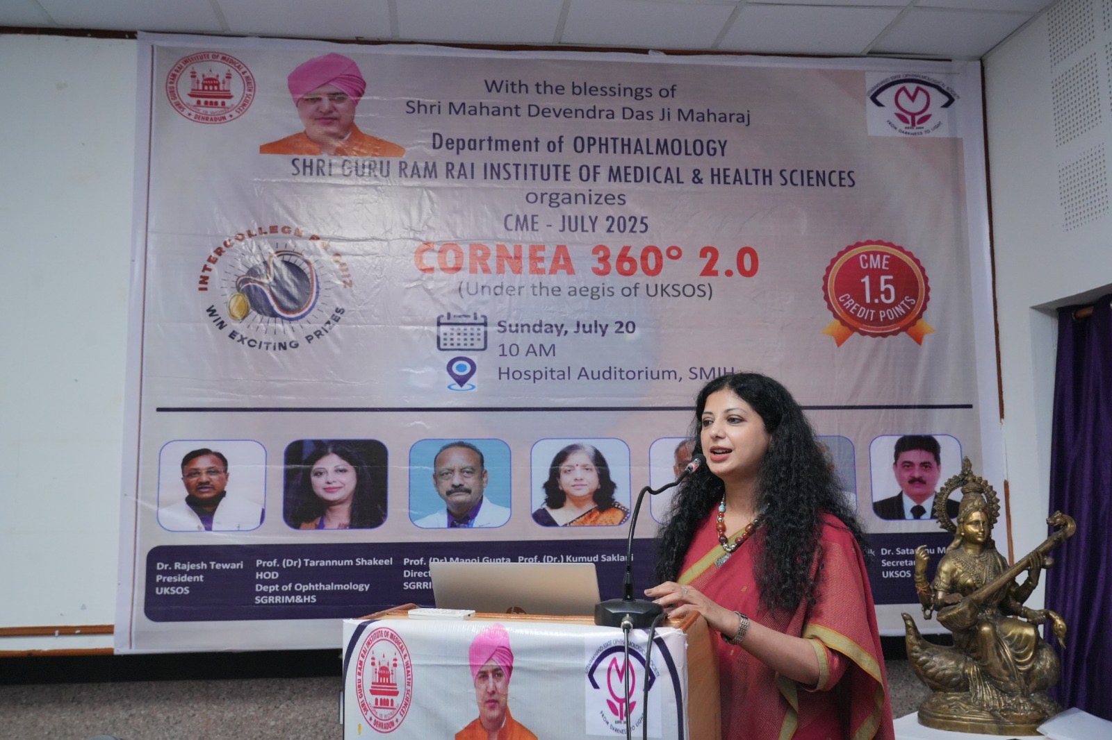 देहरादून। श्री गुरु राम राय इंस्टीट्यूट ऑफ मेडिकल एंड हेल्थ साइंसेज, श्री महंत इन्दिरेश अस्पताल के नेत्र रोग विभाग की ओर से रविवार को एक दिवसीय उच्चस्तरीय निरंतर चिकित्सा शिक्षा कार्यक्रम (सी.एम.ई.) ‘कॉर्निया 360° 2.0’ का आयोजन किया गया। कार्यक्रम का उद्देश्य कॉर्निया रूमेटाइड आर्थराइटिस से पीड़ित रोगियों में होने वाली संबंधी जटिलताओं पर जनजागरुकता फैलाना और बीमारी की रोकथाम पर प्रकाश डालना था।