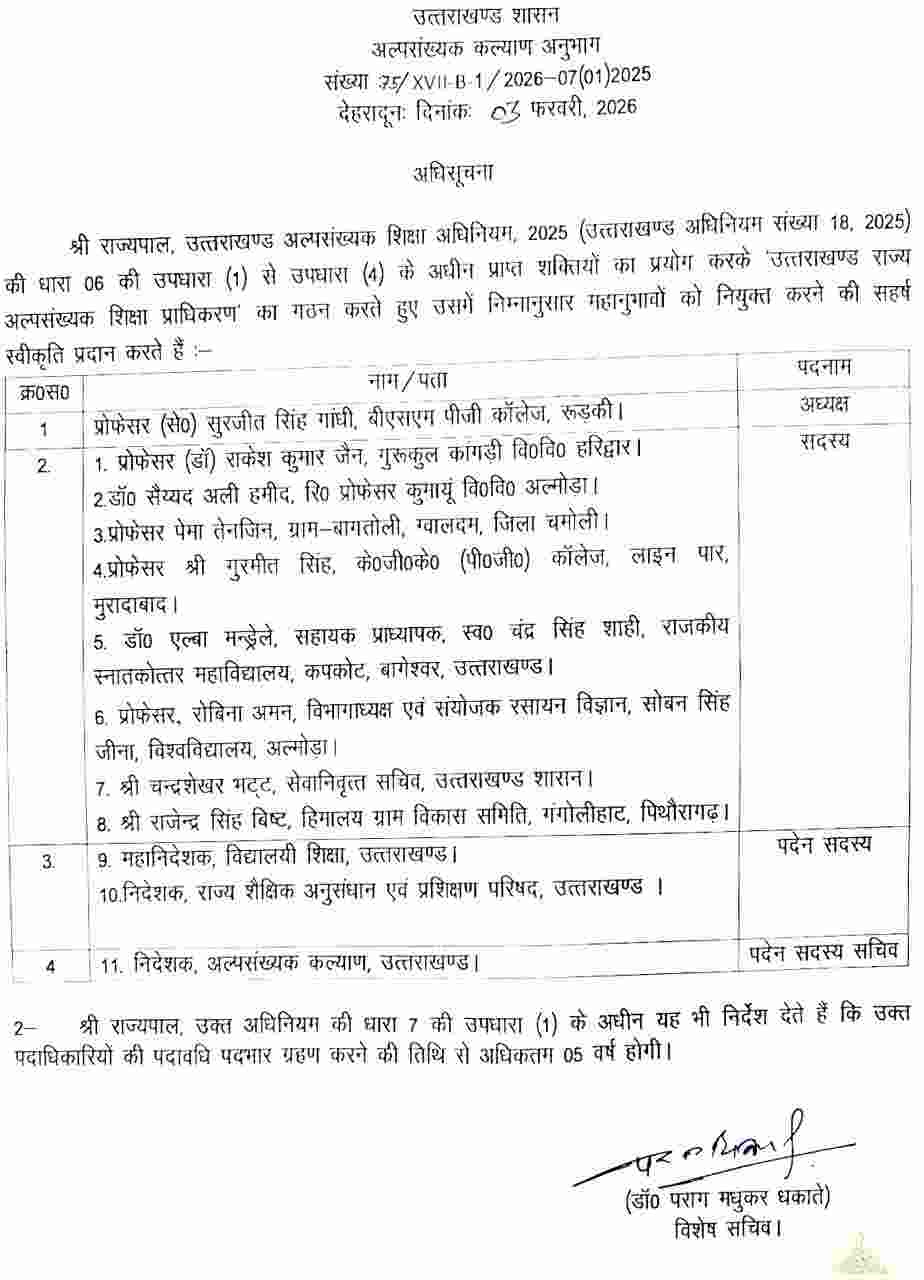 डॉ पराग ने बताया कि सीएम पुष्कर सिंह धामी के निर्देशानुसार उक्त बोर्ड में प्रोफेसर विद्वान को मनोनीत किया गया है जोकि अल्पसंख्यक विद्यार्थियों के लिए शैक्षिक पाठ्यक्रम निर्धारित करेगी।इसमें सभी अल्पसंख्यक समुदाय के शिक्षाविदों को सम्मिलित किया गया है।