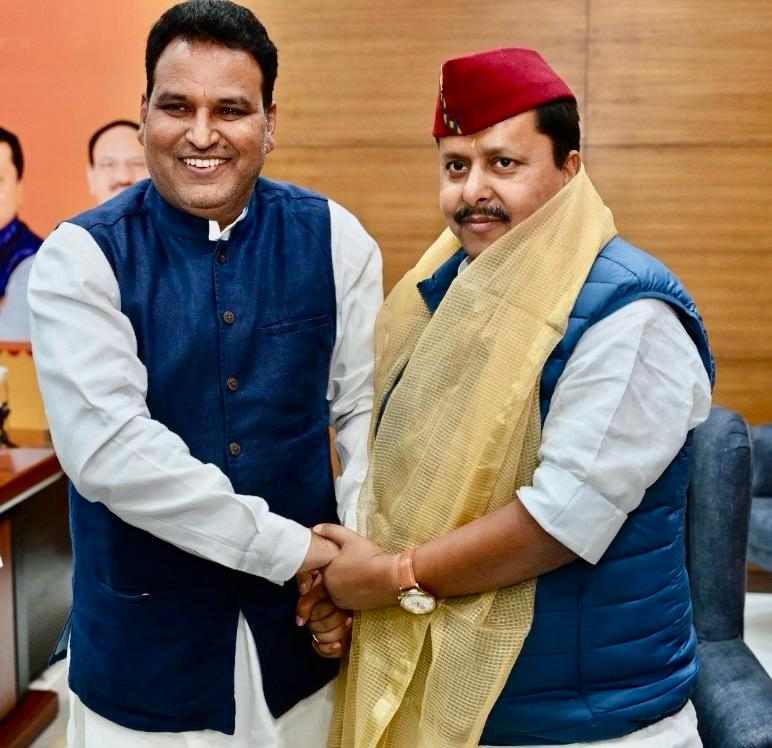 दिल्ली। देवप्रयाग से भाजपा विधायक विनोद कंडारी ने आज बीजेपी के राष्ट्रीय कार्यकारी अध्यक्ष नीति नवीन से दिल्ली में मुलाकात की है,नितिन नवीन को राष्ट्रीय कार्यकारी अध्यक्ष बनने की बधाई विधायक विनोद कंडारी ने दी है,आपको बता दे जब भाजपा युवा मोर्चा के राष्ट्रीय अध्यक्ष अनुराग ठाकुर थे,तब अनुराग ठाकुर की टीम में जनरल सेक्रेटरी के तौर पर नीतिन नवीन को जरनल सेकेट्री ये रुप मे जगह मिली थी,तो वही विनोद कंडारी सेक्रेटरी के तौर पर अनुराग ठाकुर की टीम में शामिल थे। बीजेपी के राष्ट्रीय कार्यकारी अध्यक्ष नियुक्त होने पर नीतिन नवीन को बधाई देने के लिए देशभर से भाजपा के नेता दिल्ली पहुंचकर बधाई दे रहे हैं,तो वहीं उत्तराखंड से भाजपा विधायक विनोद कंडारी ने भी बधाई देकर बीजेपी के राष्ट्रीय कार्यकारी अध्यक्ष को बधाई दी है।